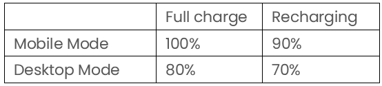 - A960 has BMS (Battery management system) function to protect the lithium battery from being over-charged, so A960 can work either on Desktop mode or Mobile Mode (Select “Settings” > “Battery” > “More Settings” > ”Power Supply Work Mode”).